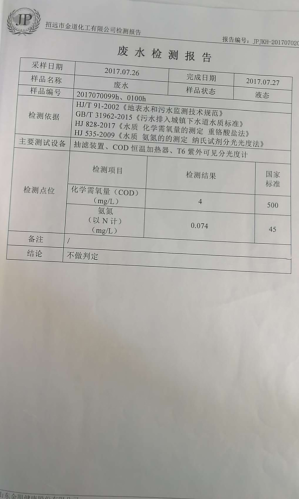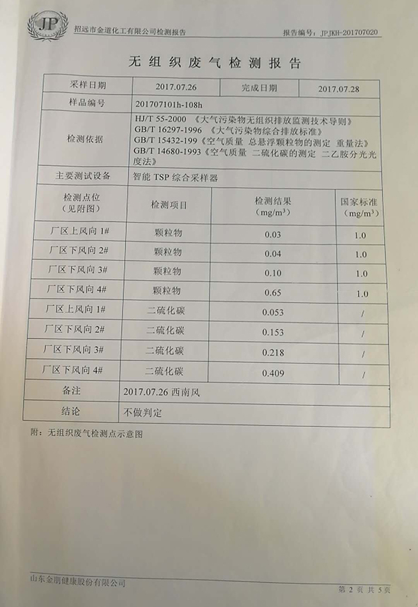 無組織排放小于3mg/立方米,排放量0.2t/年,產品粉塵產生量小于0.2t/年。 |